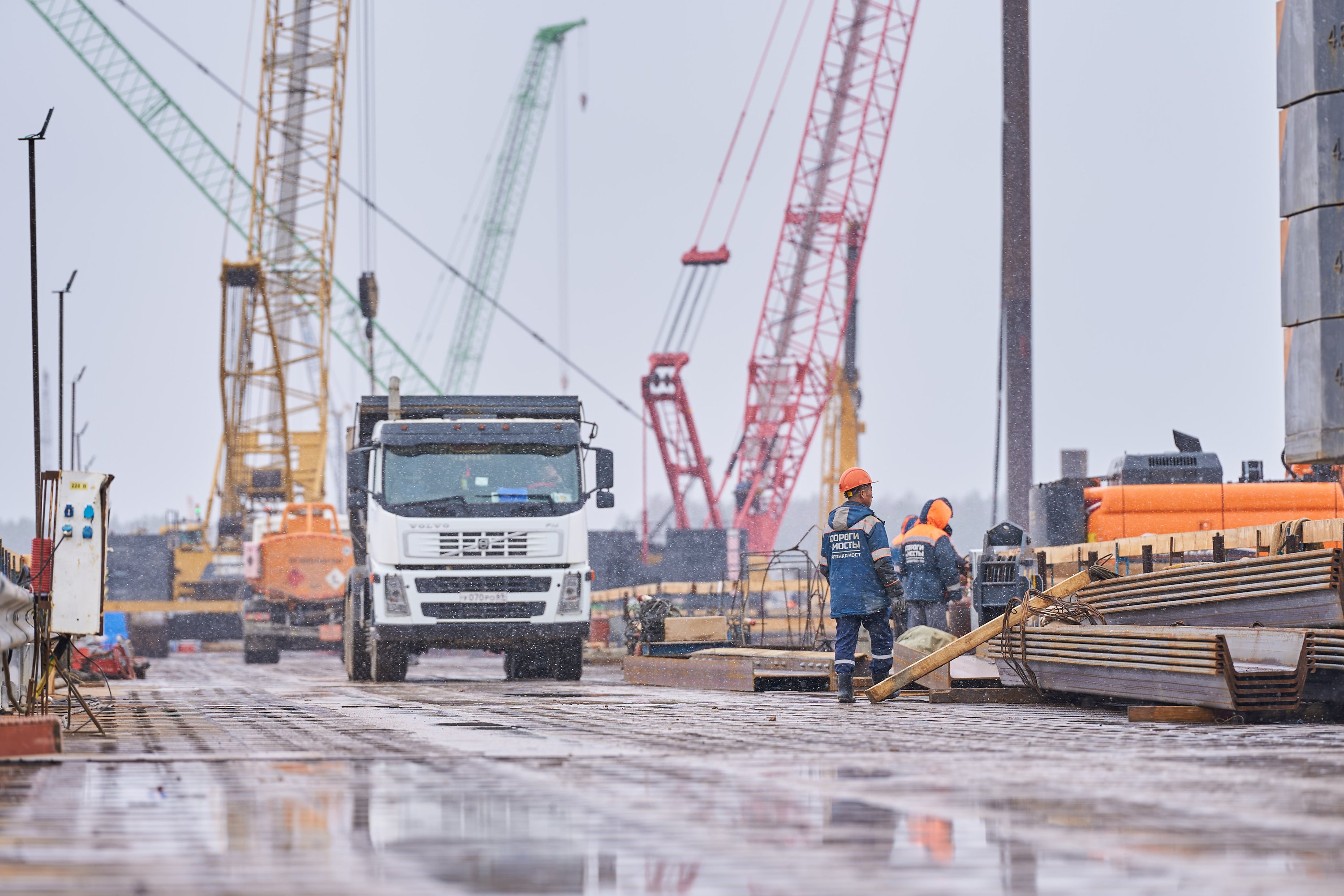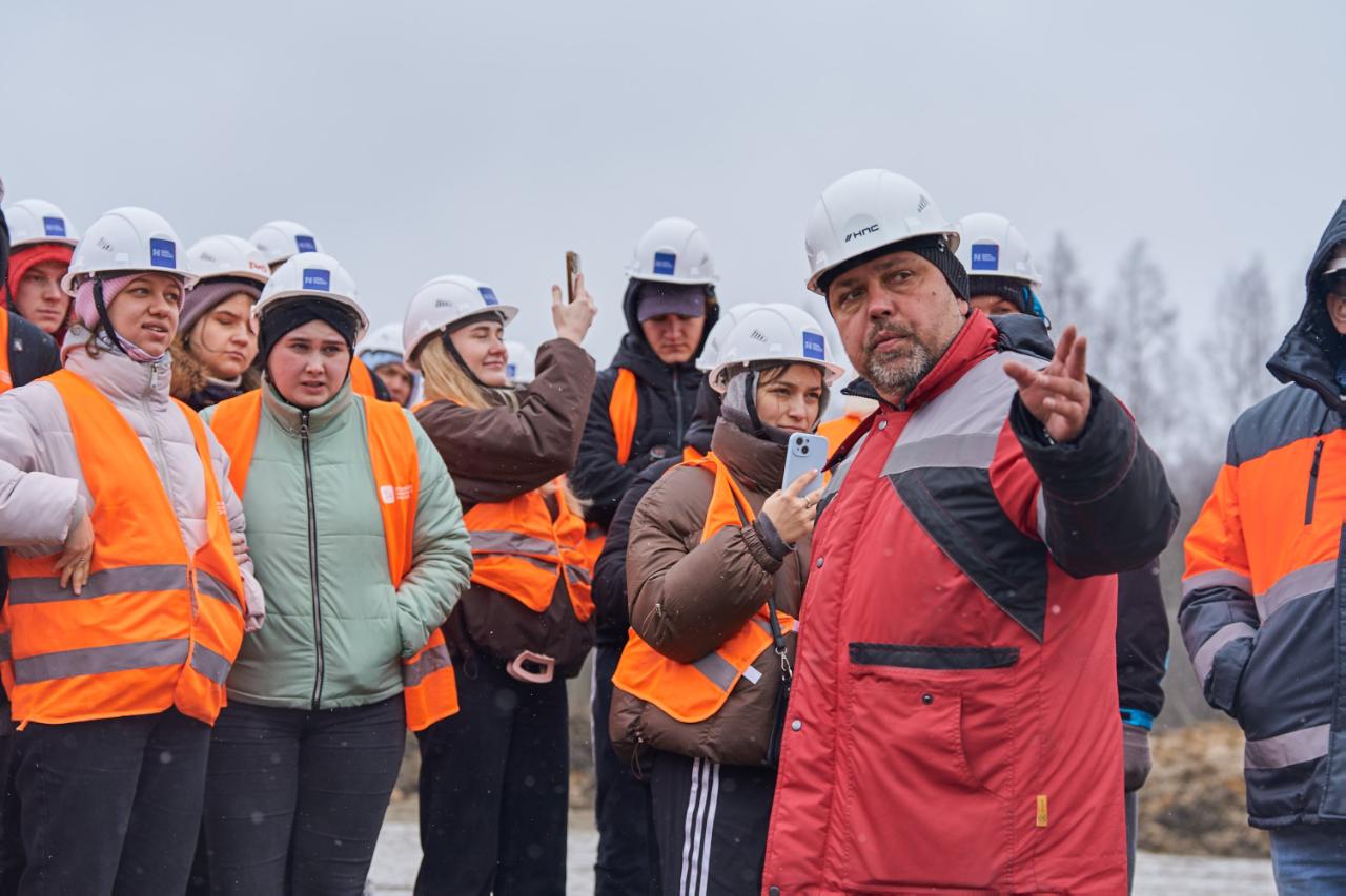 Практика прошла в Тверской области — на строительстве моста через реку Шошу. Это часть первой в России высокоскоростной магистрали. Студенты посмотрели, как организована стройка, и разобрали основные этапы работ:погружение свай, армирование ростверков и опор, бетонирование. В полевых условиях провели неразрушающий контроль качества бетона.