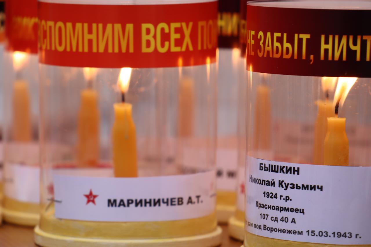 При содействии Юнармейцев, обучающиеся 2 Б класса, совместно со своим классным руководителем Лобас Г.И. провели исследовательскую работу по восстановлению данных о погибших бойцах, чьи фамилии высечены на граните мемориала. Результатом этой работы стало создание макета – точной копии мемориала и проведенная сегодня акция «Свеча памяти».