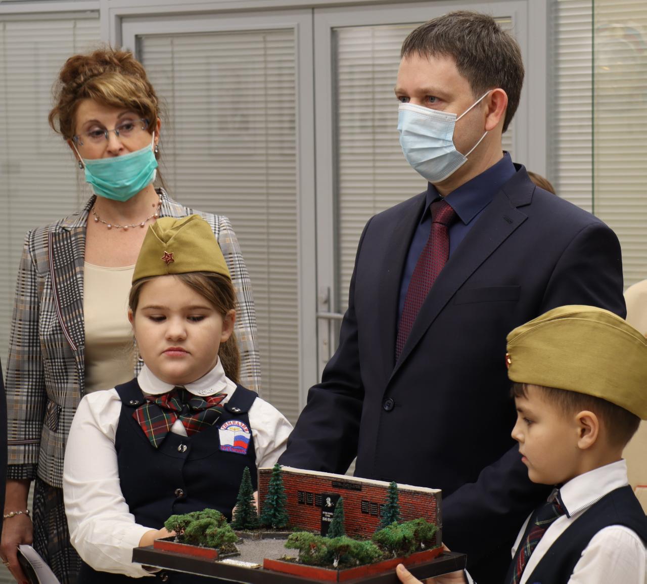 Далее мероприятие продолжилось в музее, где ребята передали директору АО «ВНИИЖТ» созданный своими руками макет мемориала.