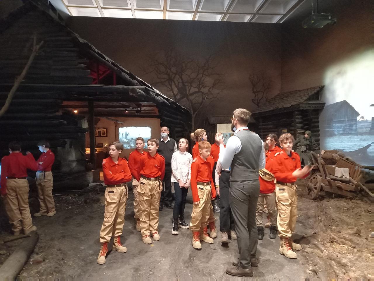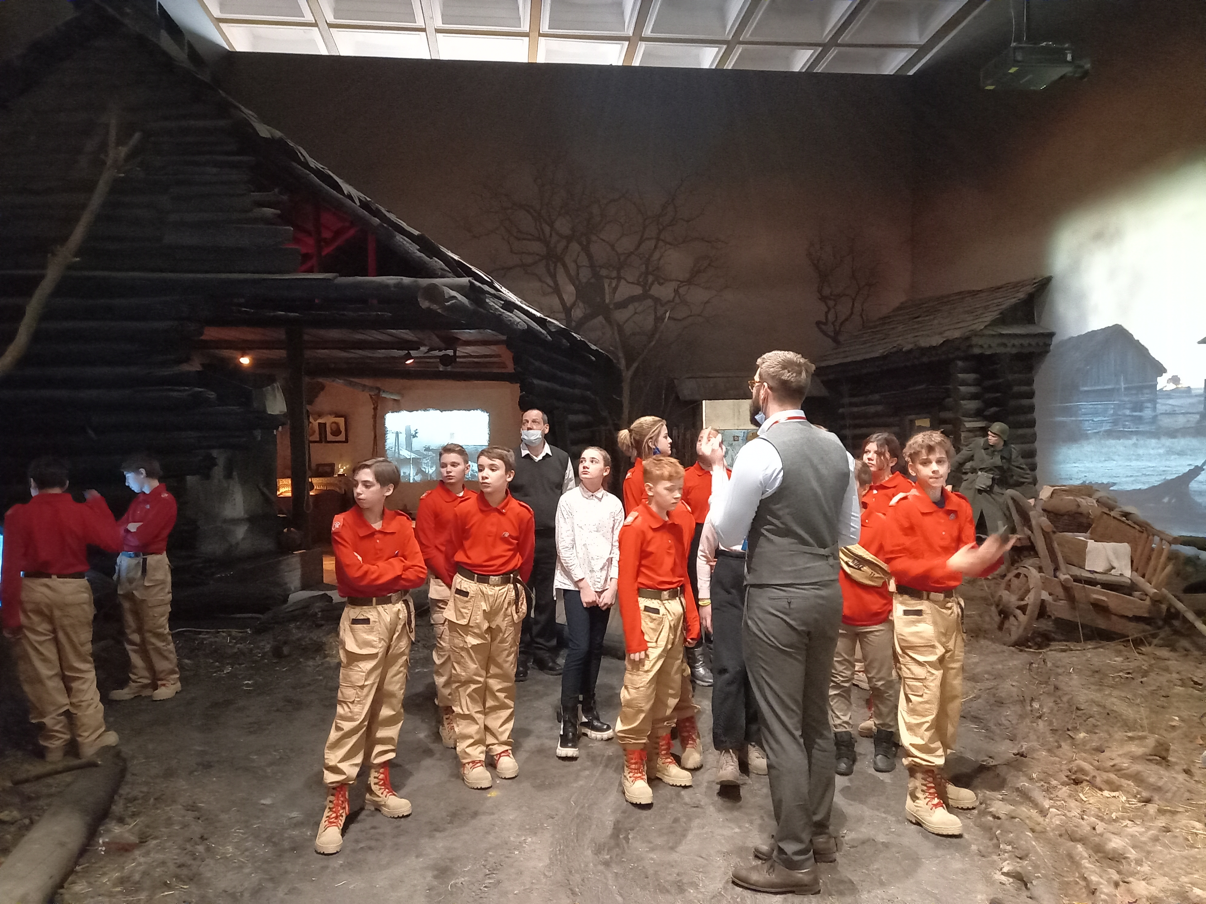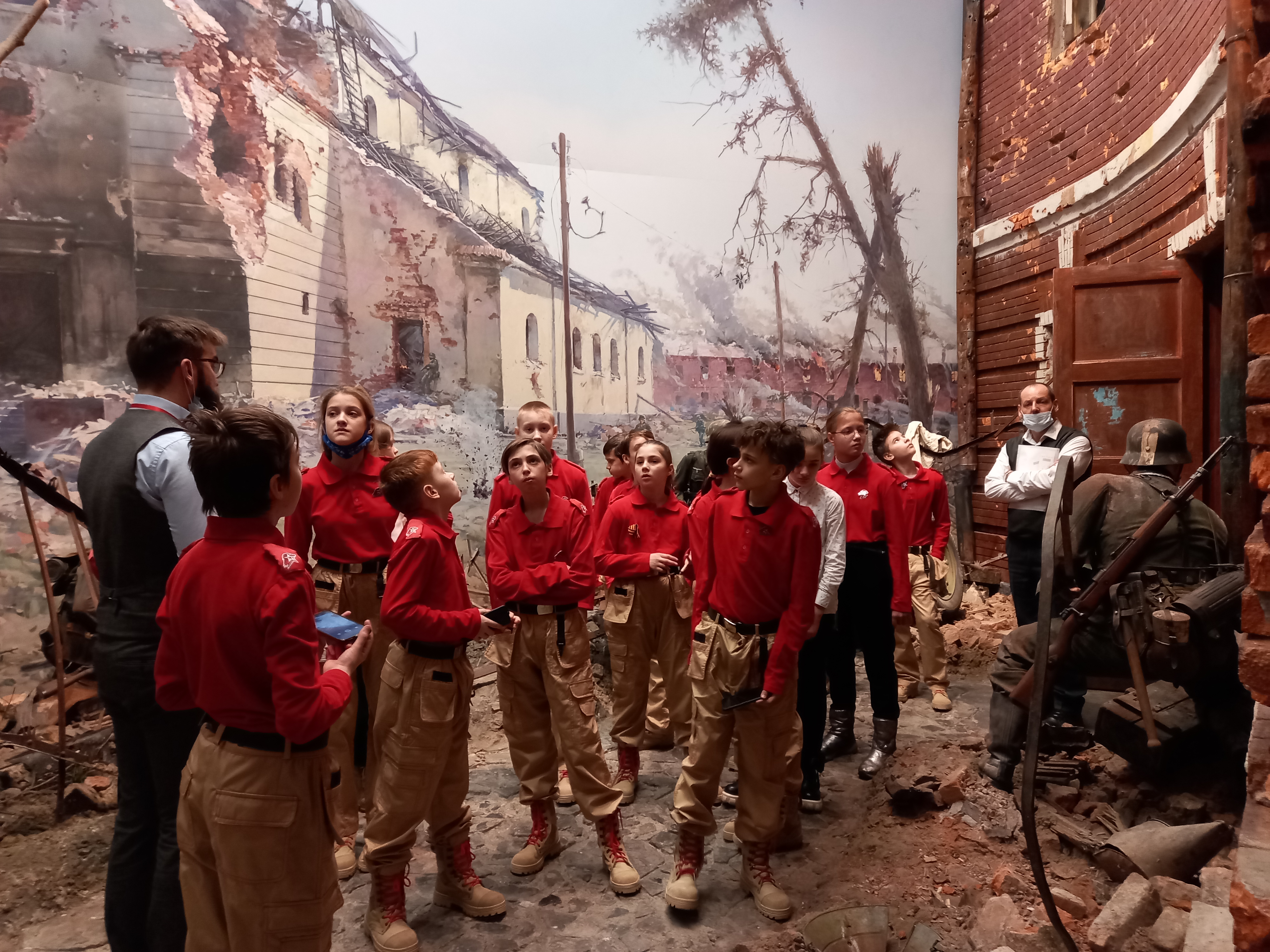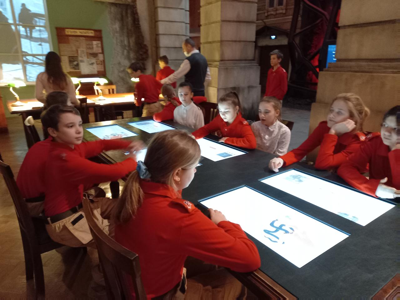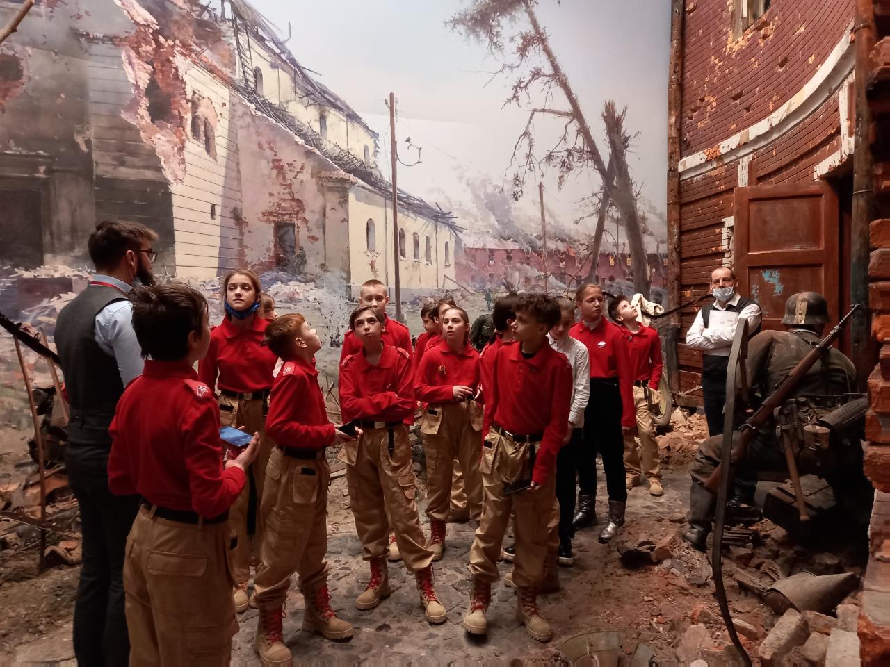События Великой Отечественной войны – очень важный этап в истории нашей страны. Юнармейцы гимназии проявляют активный интерес к военным событиям. Изучают их не только по учебникам, но и в музейных экспозициях. А вот познакомиться с жизнью советских людей в годы войны, узнать, как они «ковали победу», участвовали в подполье…. Поэтому для юнармейцев посещение экспозиции «Подвиг народа» в музее Победы стало открытием неизвестных ранее сторон жизни человека на войне. Интерактивная и реалистичная экспозиция погружает в эпоху. Это уникальное музейное пространство в деталях рассказывает о том, какой тяжелый путь был пройден советским народом к Победе в Великой Отечественной войне.